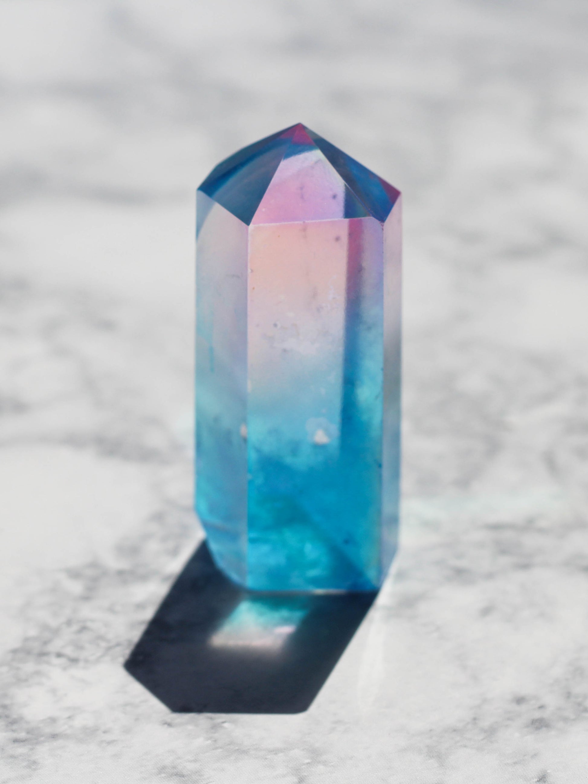 Our Pink and Aqua Aura Polished Quartz Tower is a stunning combination of two beautiful aura coatings, creating a unique and captivating piece that highlights the natural beauty of the quartz. The crystal you see in the photos is exactly what you'll receive, ensuring you own a distinct treasure.